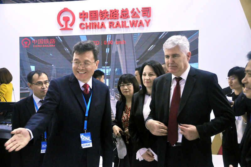 中国驻波黑大使馆特命全权大使季平先生等政要及贵宾共同出席展会开幕式。季平大使分别陪同波黑克族代表德拉甘·乔维奇,国防部长玛丽娜·彭黛什和联邦财政部长米莉柴维奇参观了中国铁路展区。听取 “复兴号”系列动车组、中国铁路发展成就、中欧班列及中国铁路国际合作项目的介绍,并亲身体验高铁模拟驾驶设备。