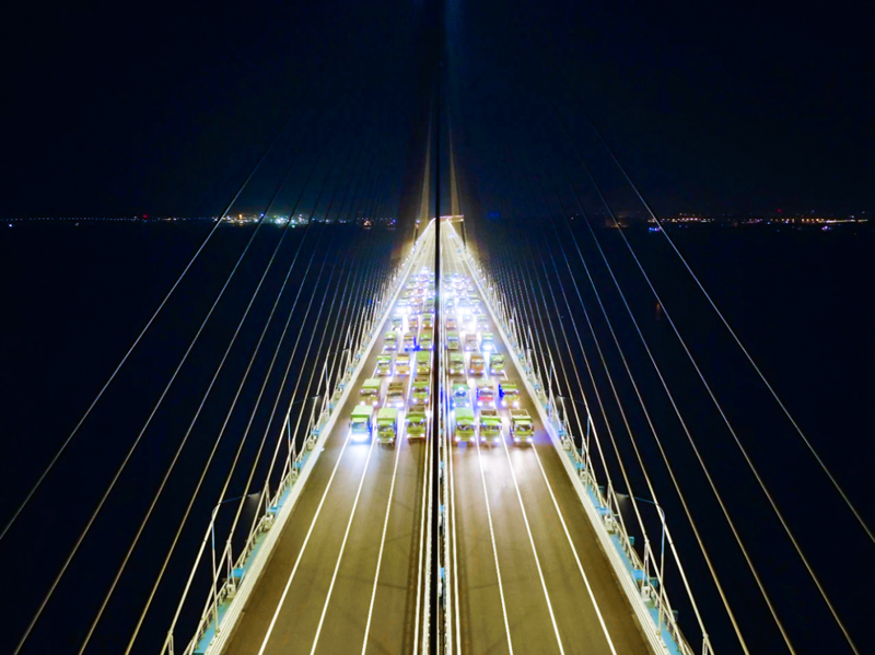 静载试验的顺利实施标志着沪通长江大桥成桥荷载试验的完美收官,为了解桥梁结构在荷载作用下的实际工作状态,综合判断桥梁结构的承载能力、动力特性和制定安全运用条件提供直接支撑,并将为后续大桥的交工验收、健康监测和运维管养等提供基础技术依据。