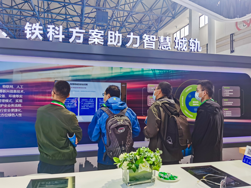 展会现场通过触摸互动屏,围绕“智能建造、智能列车、智能列控、绿色环保、智能运维、智能检监测”专题,展示了集团公司“一朵智慧城轨云,三大智慧版块,十个创新领域,多项智能应用”的智慧城轨体系,描绘铁科院集团公司“构建安全、便捷、高效、绿色、经济的新一代中国式智慧型城市轨道交通”的智慧轨道蓝图。