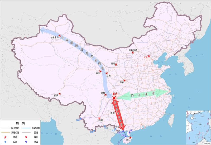 目前西部陆海新通道已形成内蒙古、广西、海南、重庆、四川、贵州、云南、西藏、陕西、甘肃、青海、宁夏、新疆与广东湛江“13+1”合作共建机制,联通全球83个国家、203个港口。2017年至2019年,西部陆海新通道班列分别开行59列、1031列、1823列,2020年1至10月班列共开行2572列,同比增长73%,发展态势良好。