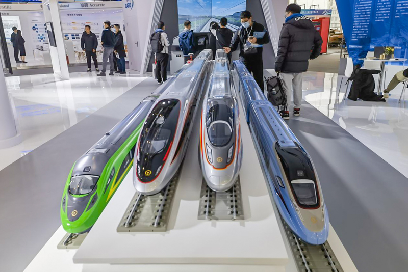 “复兴号”系列动车组模型是展会观众的热点打卡展项。通过工作人员介绍,观众们了解到铁科院集团公司作为“复兴号的摇篮”,坚持自主创新,成功研制了牵引、制动、网络以及安全检测等核心系统关键部件,以科技支撑“复兴号奔驰在祖国广袤的大地上”。