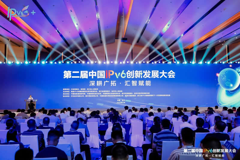 第二届中国IPv6创新发展大会由中央网信办、教育部、浙江省人民政府指导,推进IPv6规模部署和应用专家委员会联合浙江省委网信办、金华市人民政府主办。大会现场,推进IPv6规模部署和应用专家委员会还发布了《中国IPv6产业发展报告(2023版)》,对我国IPv6政策布局、应用发展、技术部署、设备支持度、标准建设等进行了总结和分析,为政府、行业、企业开展IPv6规模部署及“IPv6+”创新应用提供参考。