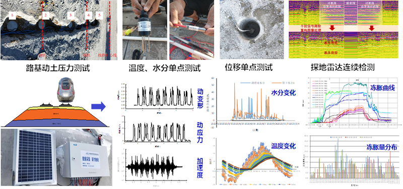 截至2022年底,我国高铁里程达4.2万公里,成为世界高铁运营里程最长、运营速度最高、运营场景最丰富的国家。同时,我国作为冻土大国,季节性冻土区占总面积53.5%,覆盖高铁超过7000km。在季节性冻土区,高铁路基主要面临着包括季节性冻融循环作用以及列车通过时动力作用的多因素影响,填料与路基结构服役状态复杂,可能诱发服役性能的劣化,从而引起不均匀变形、封闭层开裂、底座离缝等不同程度的冻害问题,对列车的安全平稳运行带来了风险隐患,导致列车限速、大量人力物力投入维修等不利影响。在上述背景下,如何科学有效地评估季节性冻融环境大规模运营的高铁路基服役性能演化规律与相应的孕灾风险,从而保障路基百年服役期的耐久稳定,是季节性冻土区高铁建设、运营、维养面临的重大挑战。