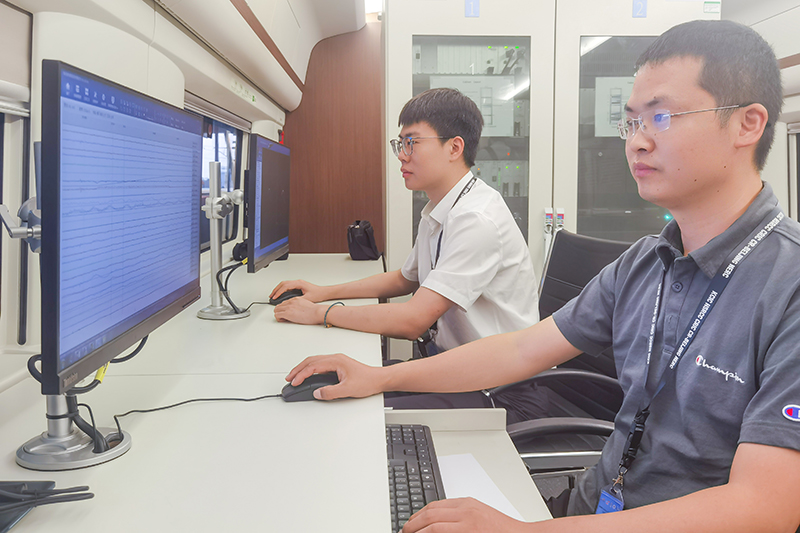 他们使用的印尼版“黄医生”,以时速350公里CR400AF复兴号中国标准动车组技术平台为基础,是铁科人通过十多年积累的联调联试以及日常巡检的成功运用经验,采用国内先进成熟可靠的检测系统技术方案,根据印尼气候环境、地理环境、线路条件、人文特征等方面进行适应性分析,按照检测需求进行平面布局调整和检测接口设计。其中,铁科人自主开发的全国产化“轮轨力动力学检测系统”和“接触式接触网检测系统”首次应用于雅万高铁综合检测列车。