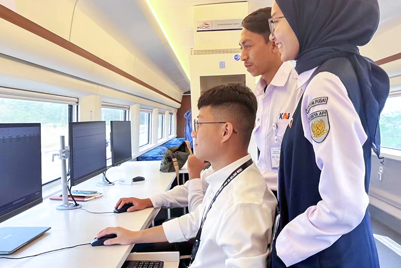 这次,铁科雅万高铁运营检测团队对3名印尼员工采用“师带徒”的方式进行教学。为加快他们的成长,检测团队的“师父们”,精心设计教学大纲,通过理论学习、现场实操和案例分析等多种学习方式,进行手把手指导,同时重视问题导向,对现场存在的不足常常加以分析总结,通过“授人以渔”的形式做好当地员工的培养。