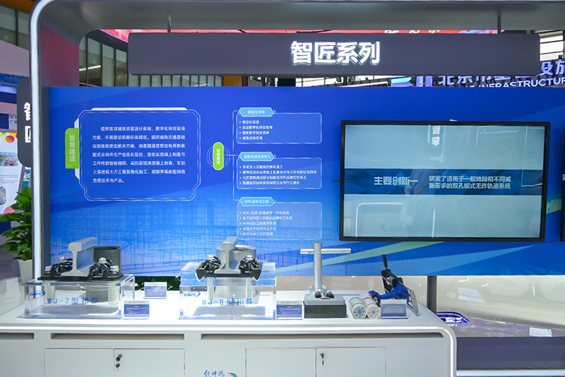 在展会上,展出了WJ-7型扣件、WJ-8型扣件、弹性支承块式无砟轨道快速改造用液体套靴、无级调整非线性浮置板轨道系统等展品。