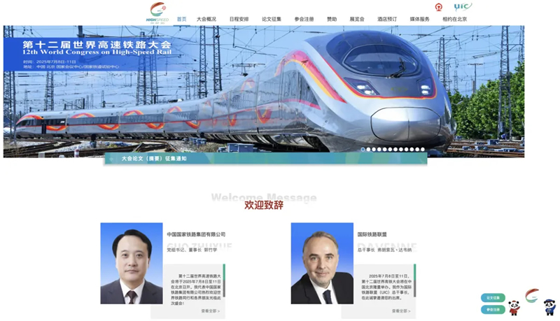 第十二届世界高速铁路大会将于2025年7月8日至11日在北京举办,今年11月18日,大会官方网站(https://www.uichighspeed2025.com)正式上线运行,标志着大会各项筹备工作全面启动。