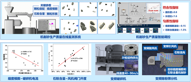 创建多料源兼容的机制砂母岩性能评价指标体系,率先将机制砂母岩性能纳入标准,从源头上保障铁路机制砂质量。发明基于机器视觉原理的机制砂生产质量在线监测系统,显著提升铁路行业机制砂绿色智能制造技术水平。研制出高稳健超流态现浇机制砂混凝土与高抗疲劳、低徐变预应力机制砂混凝土,打破机制砂在铁路预应力构件应用“禁区”。建立铁路机制砂生产与应用全流程管控平台与标准体系,形成具有自主知识产权的铁路机制砂混凝土成套技术。