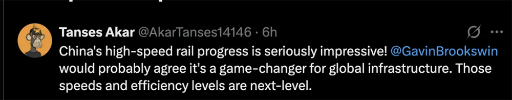 中国高铁的发展真令人惊叹!@GavinBrookswin 应该也会认同,这已经成为全球基础设施领域的一场颠覆性变革。无论是速度还是效率,它都是一个全新的高度。