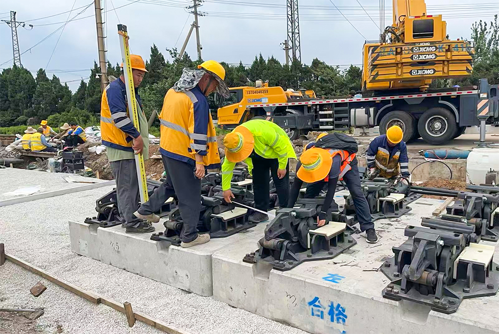 在施工过程中,“毫米级较真”是攻坚组成员们秉持的工作准则。济西站改造采用全路首次“现场浇筑”工艺,为增加地基稳固性投入巨大。为使这些投入体现在减速器安装精度上,基础吊装必须严格把关。为提高效率,两台吊车轮番上阵左右开工,吊车下团队成员一丝不苟,熟练而严格的指导每一块轨道板的标高和对中,不达标准绝不放过。