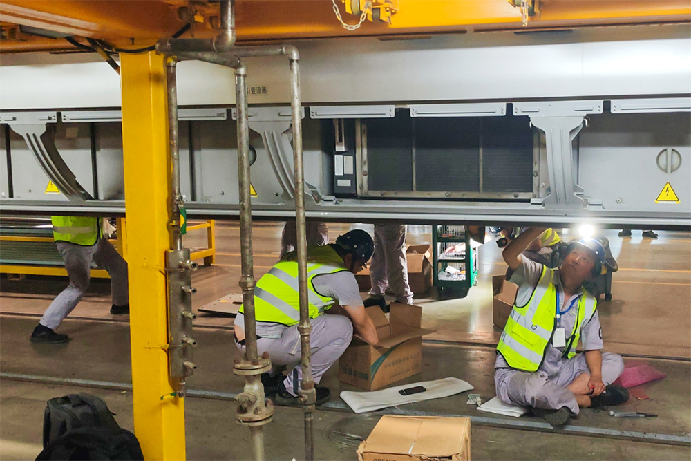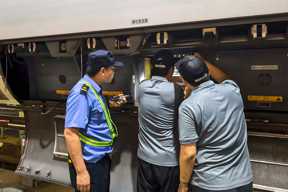 七月重庆,高温预警持续。在重庆西动车所的检修库内,工程师们顶着高温开展制动压力开关整改、并联电阻加装及电源板卡绝缘普查等工作。当最后一项有电实验验证成功时,夜幕已然降临——这一天,他们用12小时的坚守,确保了整列动车组的“健康”上线。