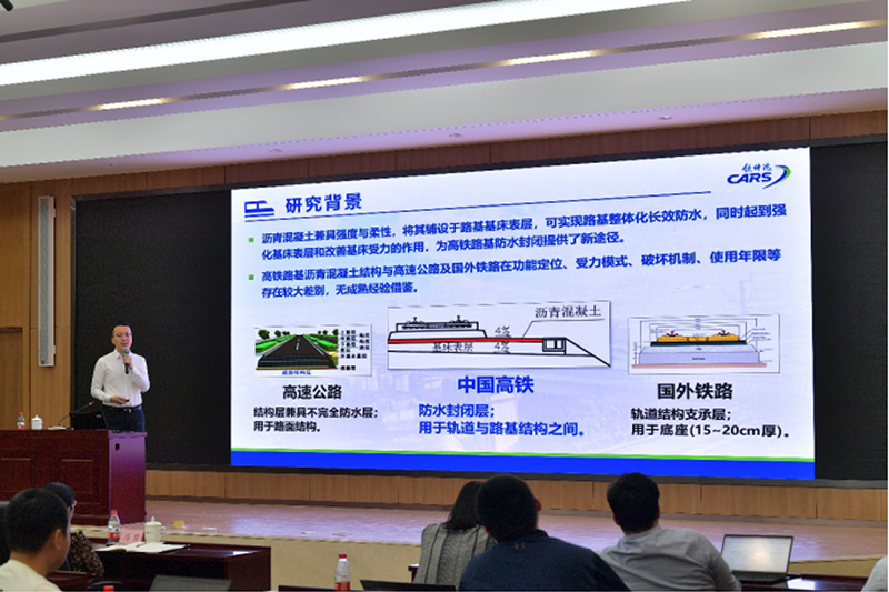 来自铁建所的全国铁路青年岗位能手石越峰以“高速铁路路基沥青混凝土结构关键技术及应用”为题做汇报。