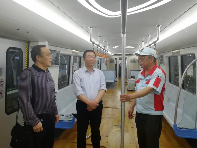交流会结束后,侯书记一行乘车抵达温州车辆项目所在的桐岭车辆基地进行实地考察。在停车库内,侯书记一行登上由我司监造的温州市域S1线电动客车,并就车辆的基本情况、配置情况及基本性能参数等进行了询问,项目负责人张海涛、监造组长姚嵩华就上述问题进行了解答。为进一步感受温州市域S1线车辆的运行情况,侯书记一行由桐岭站至惠民路站实地乘坐列车。乘坐期间,侯书记要求项目人员对市域S1线进行全面梳理总结,为后续市域铁路发展提供有力经验和技术储备。